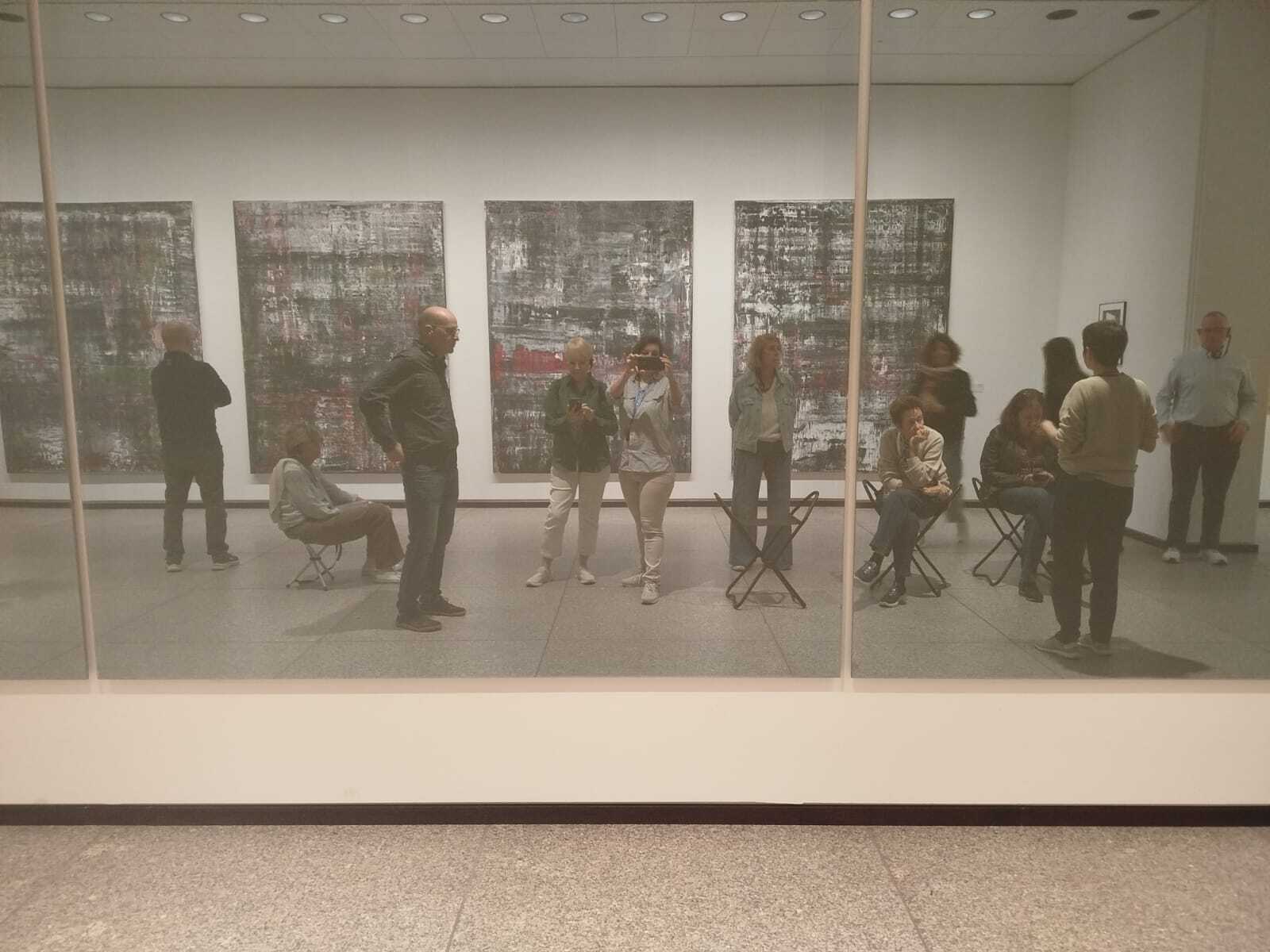 In one of his most haunting series, Gerhard Richter painted four images based on historical photographs of a Nazi concentration camp. But instead of presenting the horror directly, he covered each canvas in layers of gray, smeared and blurred brushstrokes. The result is both present and absent, a memory you can’t quite grasp. Opposite the paintings hangs a large, foggy mirror. As you stand there, you see yourself (and my mom) reflected, dimly, uncertainly, alongside the ghostly remnants of the past. The viewer becomes part of the work. Part of the memory. And part of the ongoing struggle to face what can no longer be seen, but must not be forgotten.
