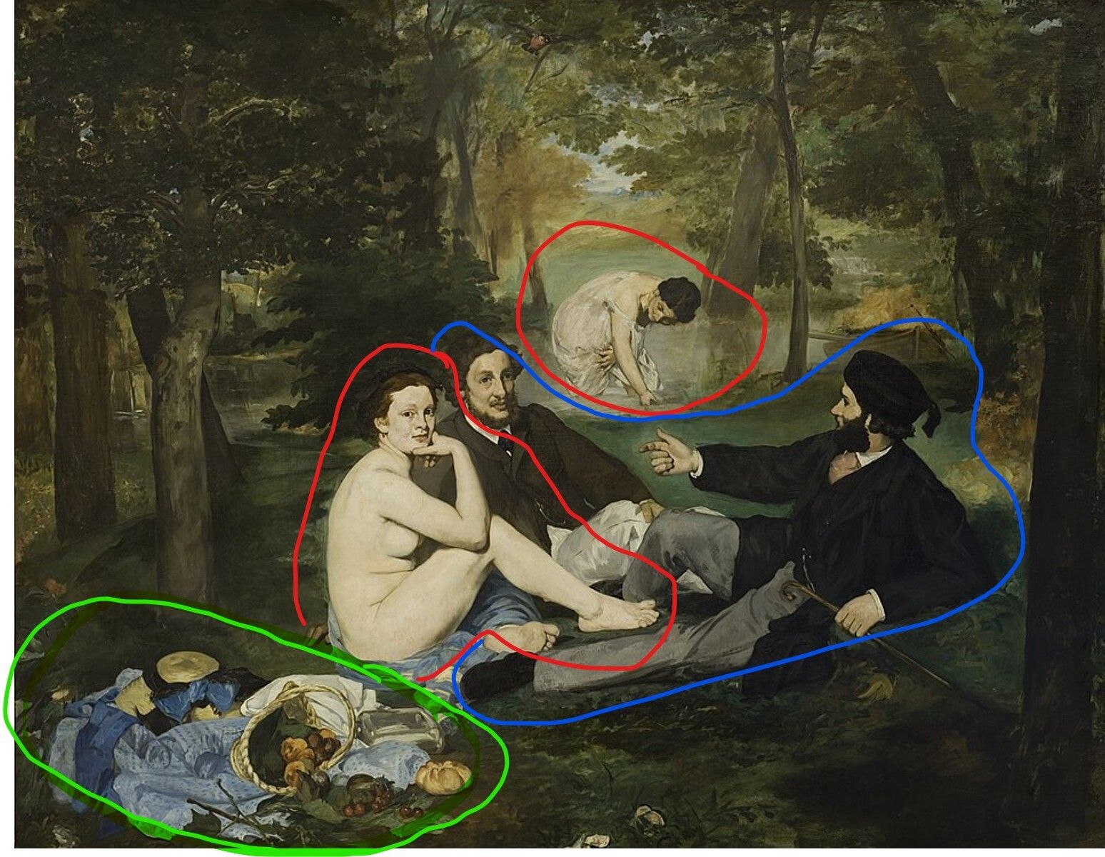 Édouard Manet, Le Déjeuner sur l’herbe (1862–63), oil on canvas, 208 × 264.5 cm, Musée d’Orsay, Paris. twELHYoc3ID_VA at Google Cultural Institute maximum zoom level, Public Domain, https://commons.wikimedia.org/w/index.php?curid=21855901